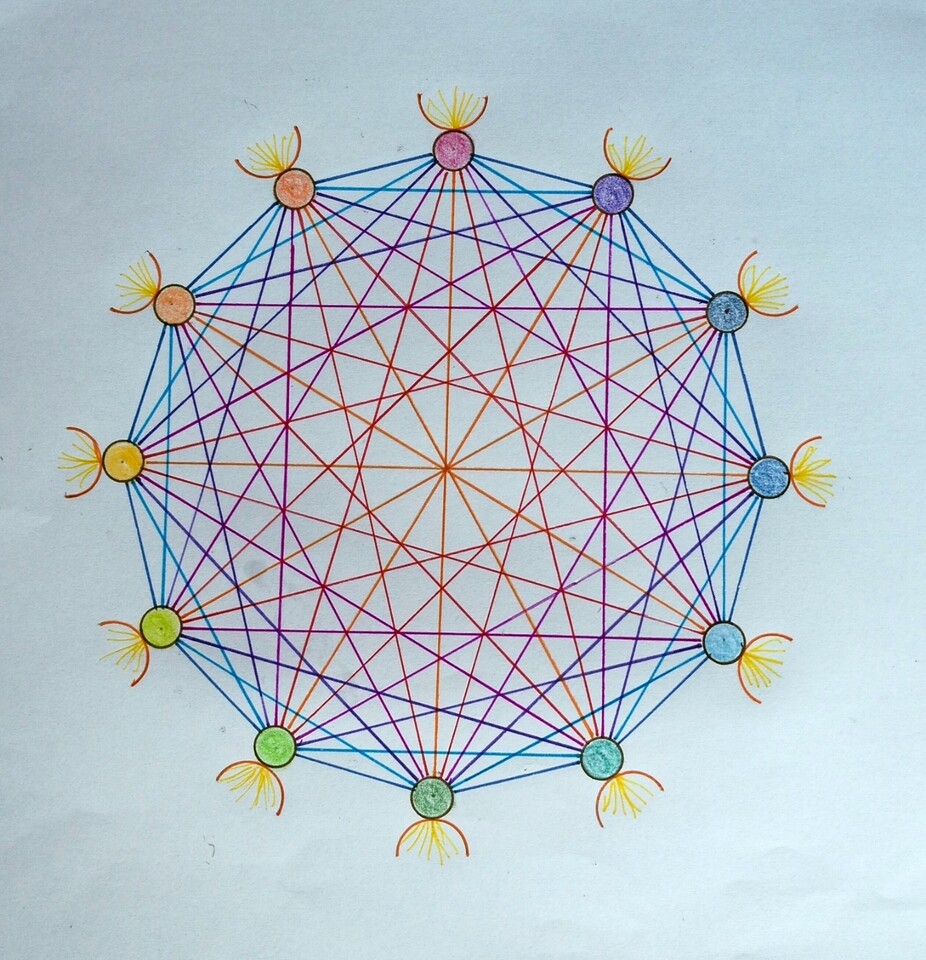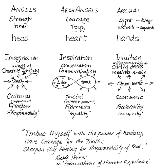 One meditational activity that Agnes introduced that I would like to share was based on the Imagination given to the first teachers of the Stuttgart Waldorf School to help them form a College of Teachers, who work together to discover the Inspirations and intuitions need to run a school with spiritual guidance. This Imagination can be effectively used by any group of colleagues (College) working together in an organisation seeking spiritual guidance from the Third Spiritual Hierarchy for their work together.