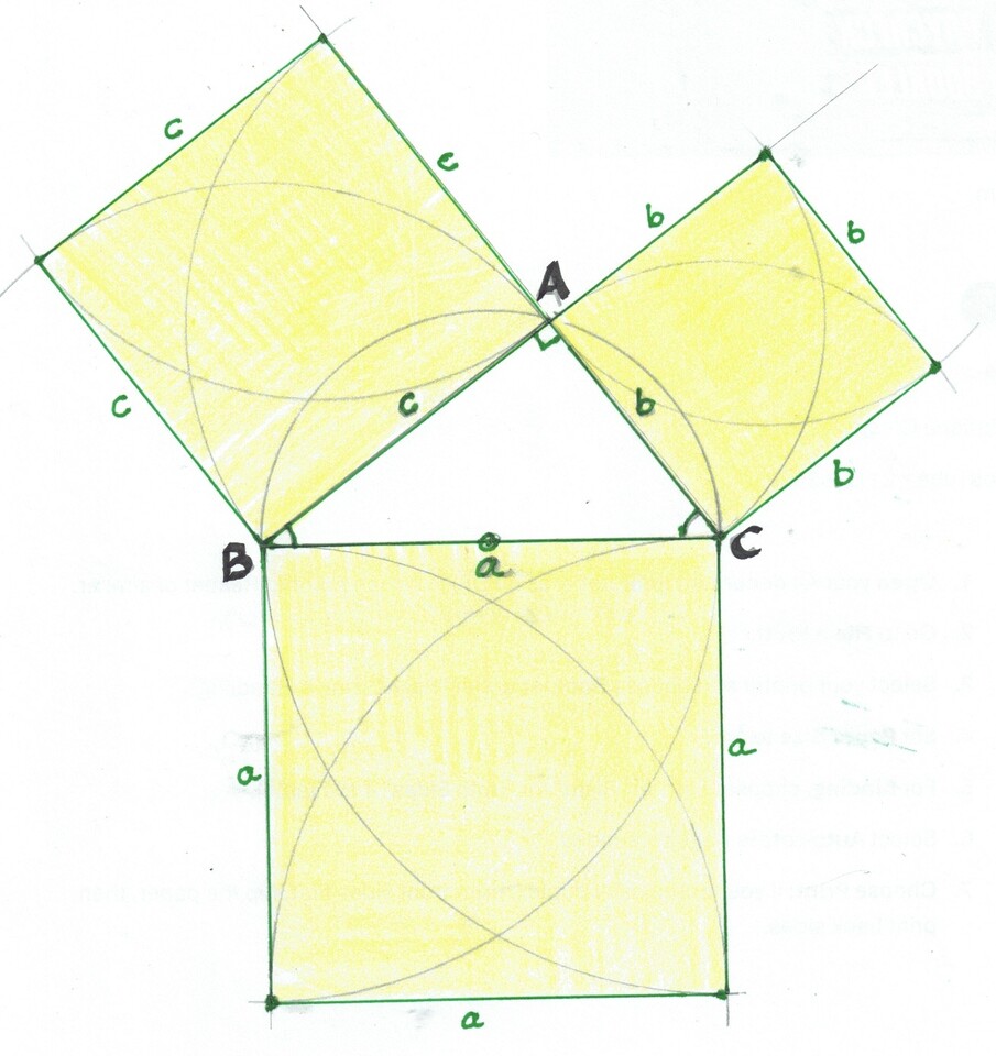If A = B + C = 90º [sizes of the angles] then a2 = b2 + c2 [areas of the squares]